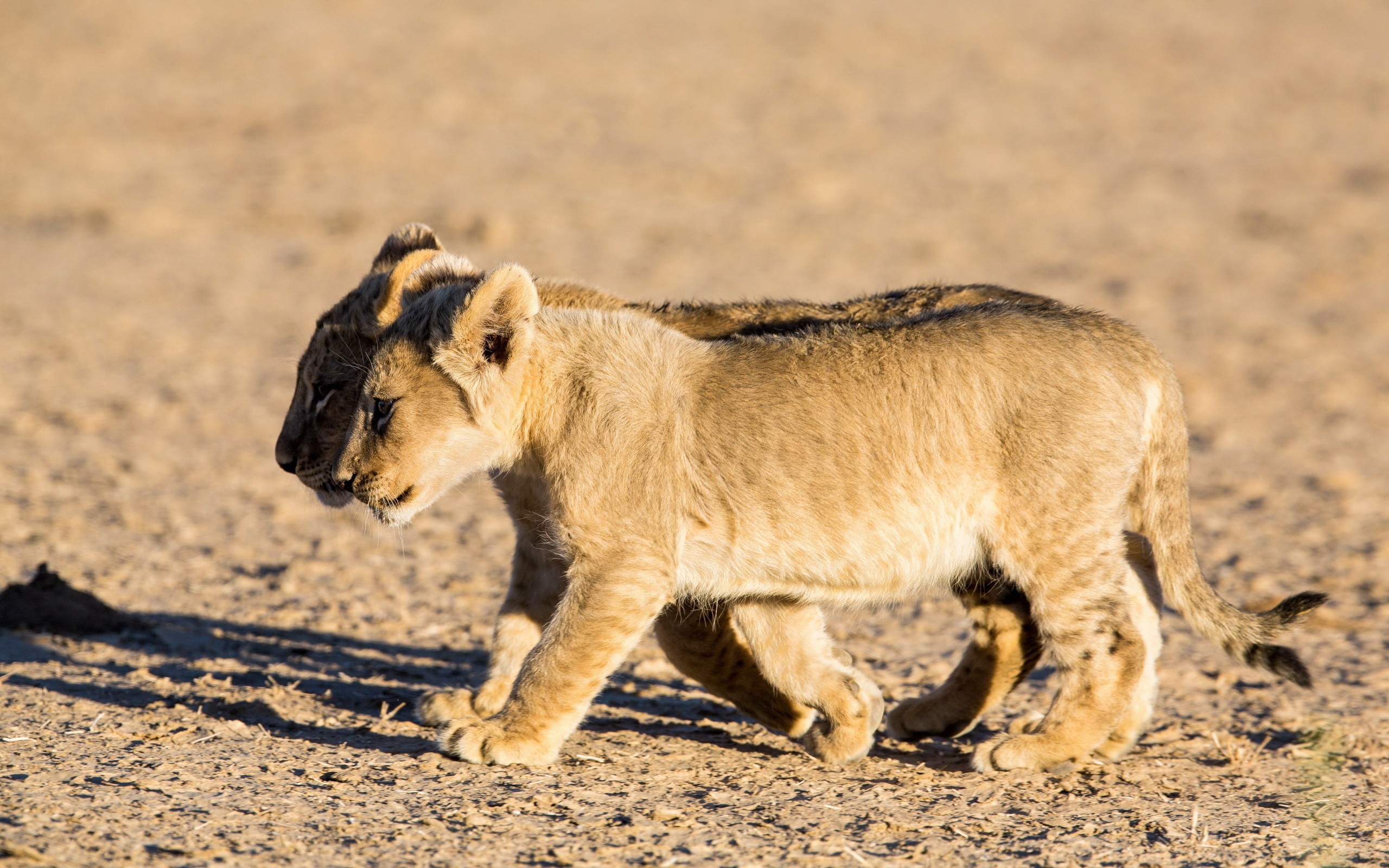 Скачать обои для рабочего стола Шагают в парe львята и фото