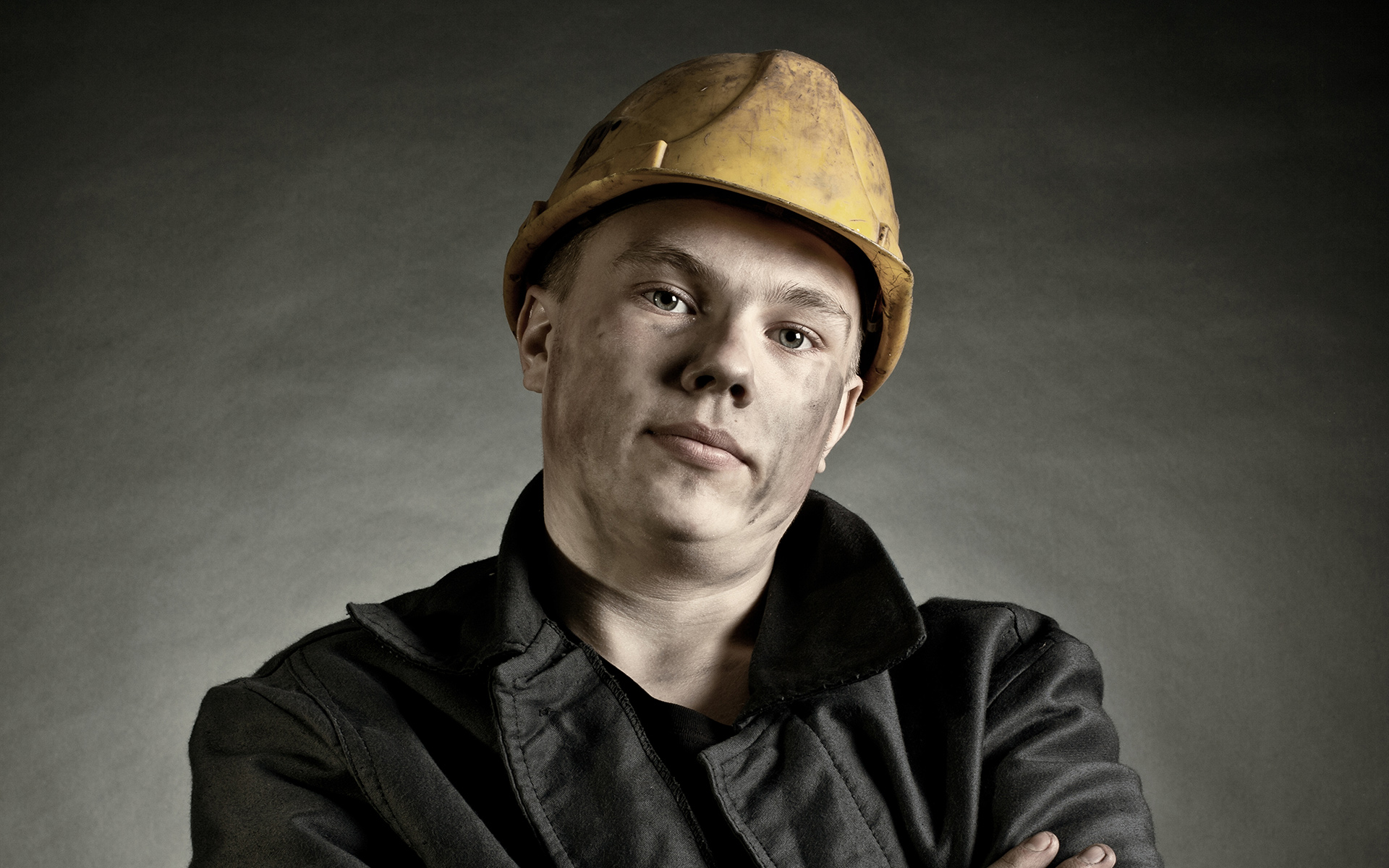Скачать обои для рабочего стола Шахтер позирует фоторепортеру и фото