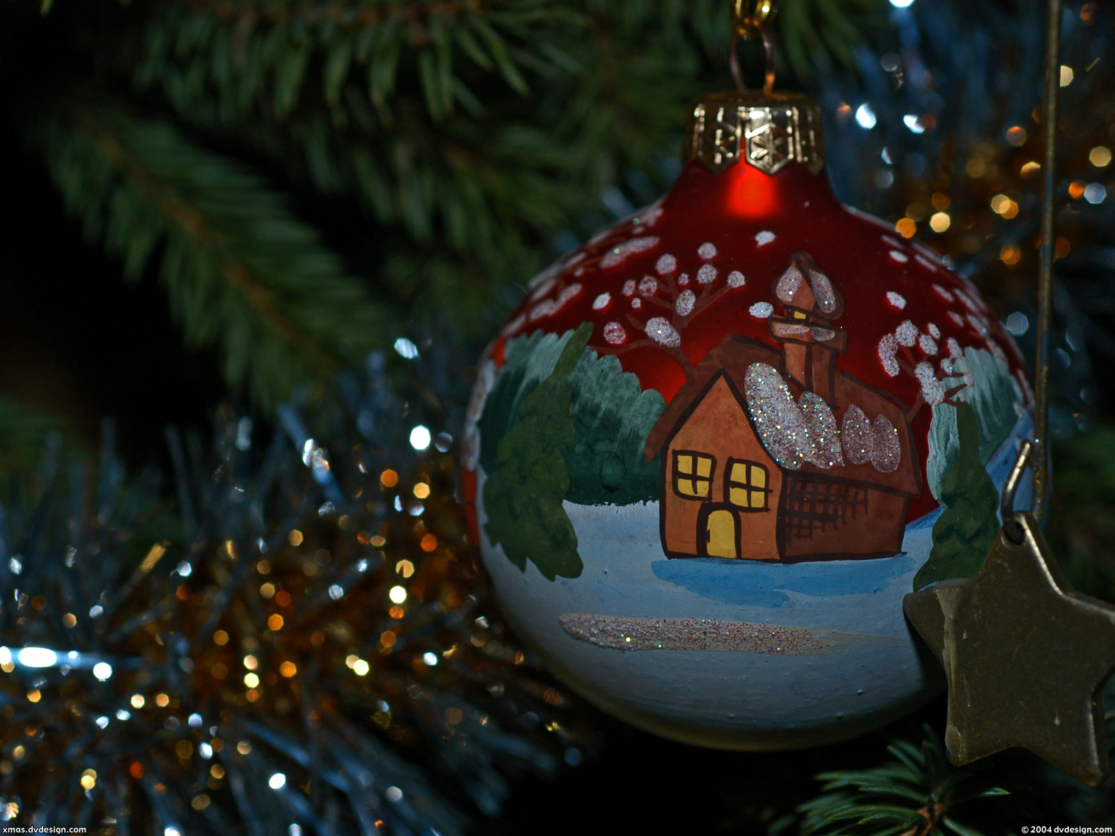 Скачать обои для рабочего стола Шар на елке и фото
