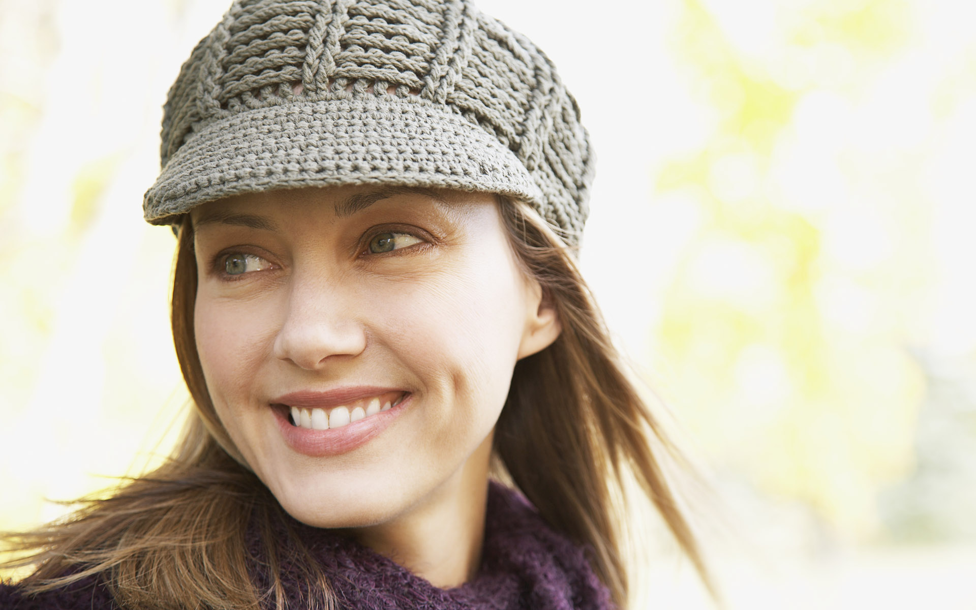 Скачать обои для рабочего стола Шатенка в кепочке в деревне и фото