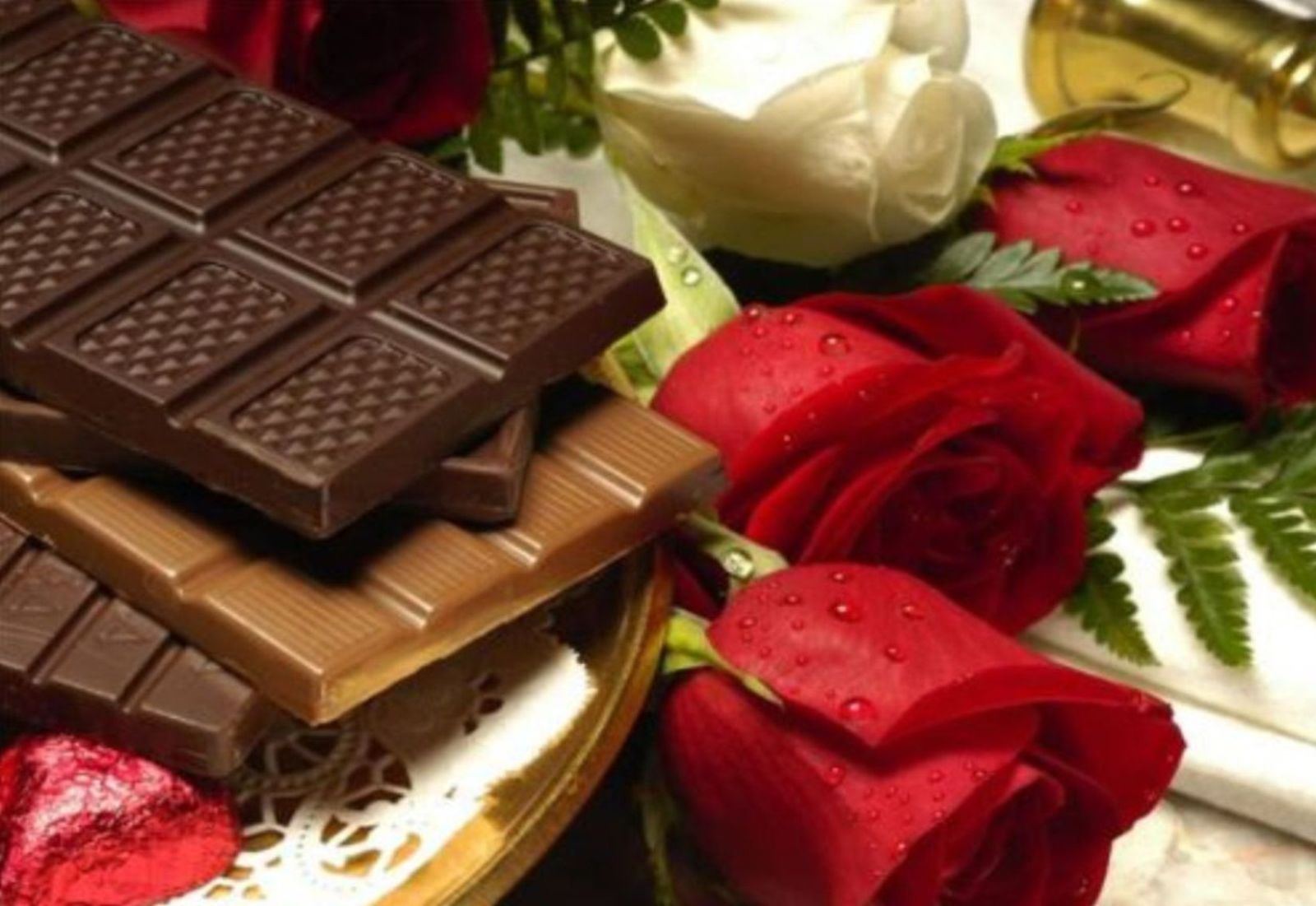 Скачать обои для рабочего стола Шоколад и розы и фото