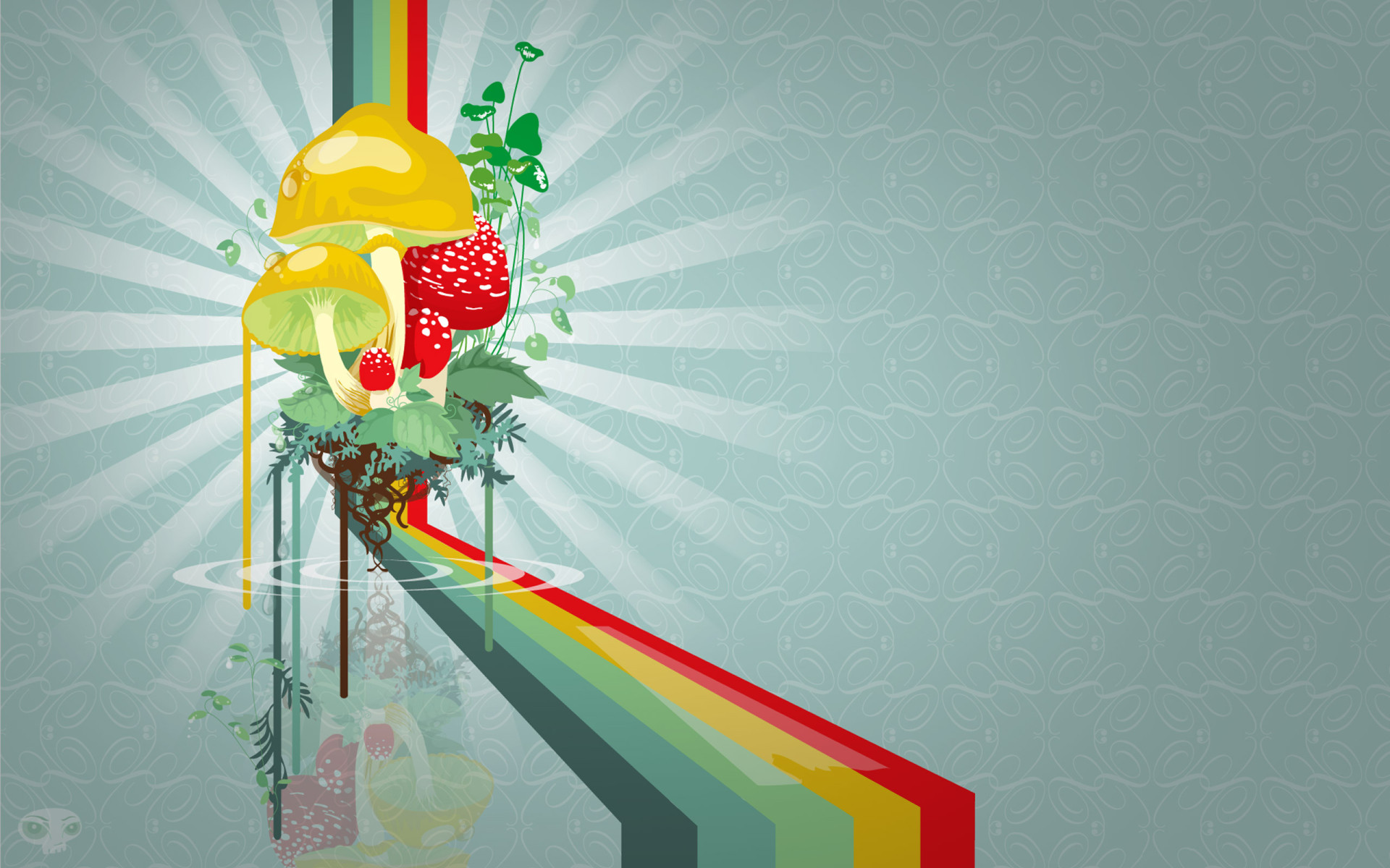 Скачать обои для рабочего стола Shroom rainbow радужные грибы и фото