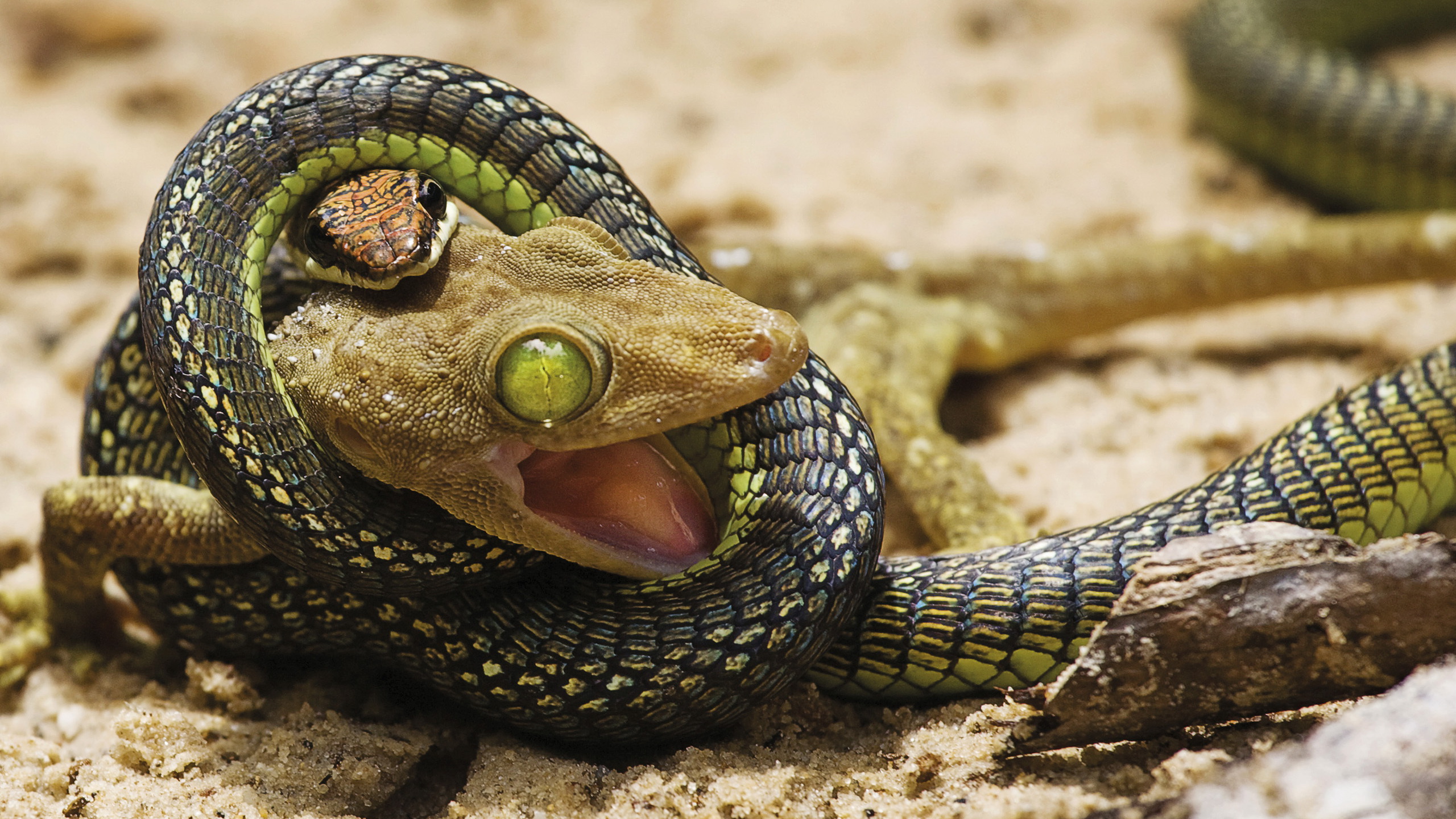 Скачать обои для рабочего стола Схватка ящерицы и змеи и фото
