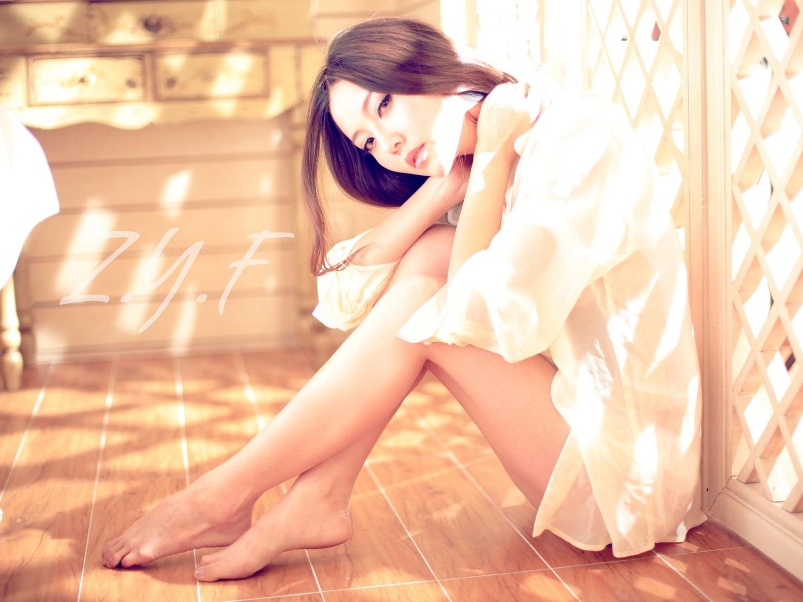 Скачать обои для рабочего стола Сидит в рубашке белой под дверью и фото