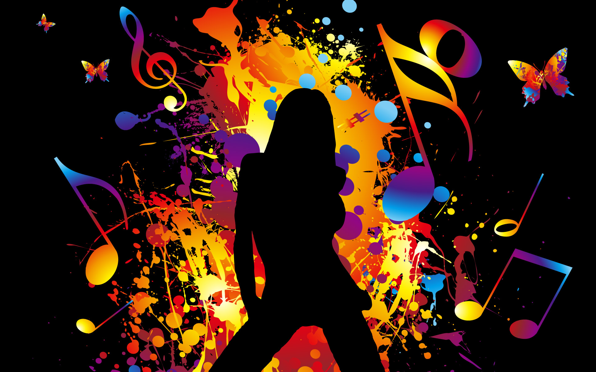 Скачать обои для рабочего стола Силуэт девушки в красках музыки и фото