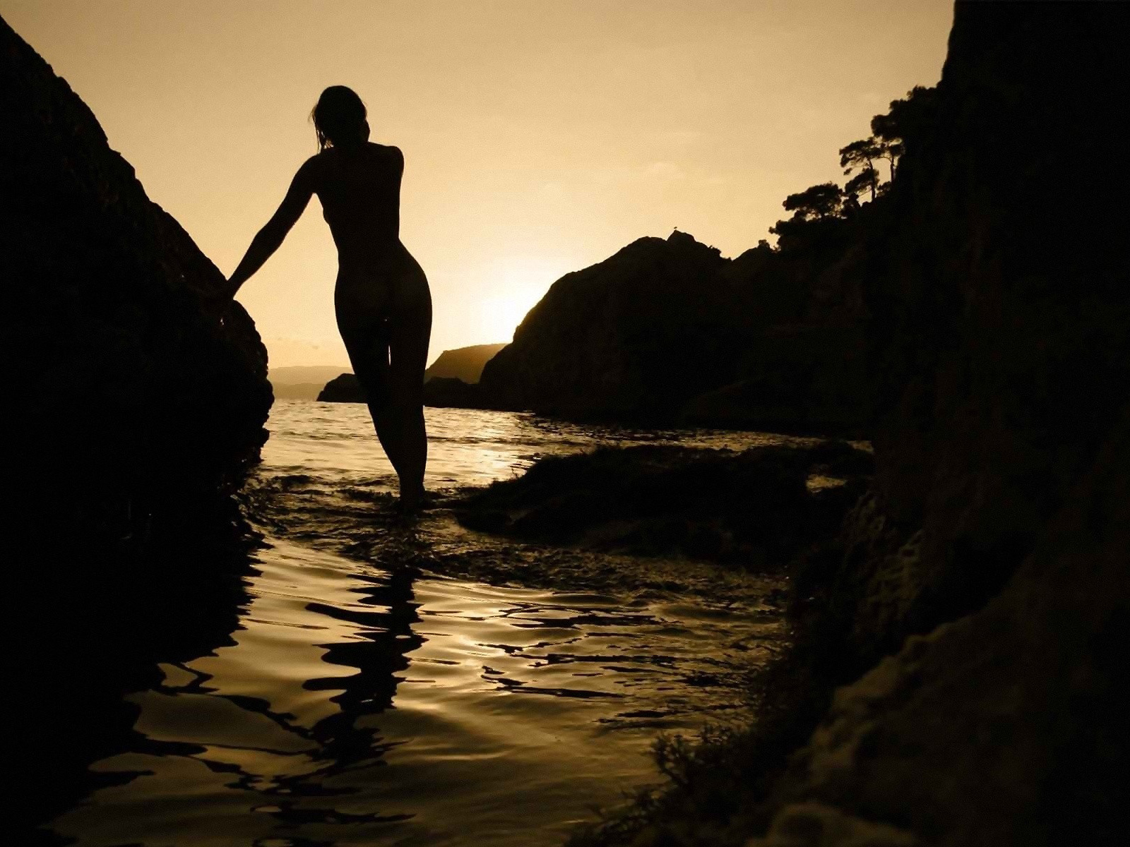Скачать обои для рабочего стола Силуэт на морском закате и фото