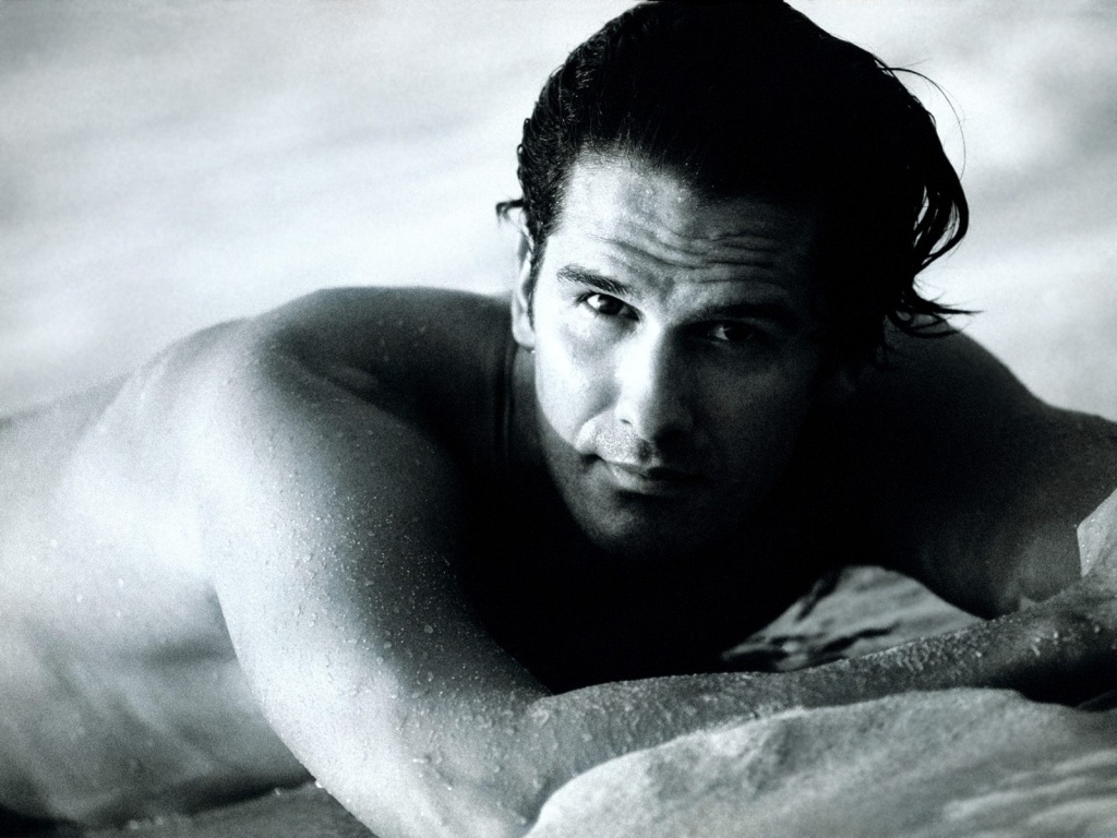 НАВИГАЦИЯ: ОБОИ ДЛЯ РАБОЧЕГО СТОЛА >> ОБОИ Мужчины >> Обои Симпатичный парень лежит (черно-белая)