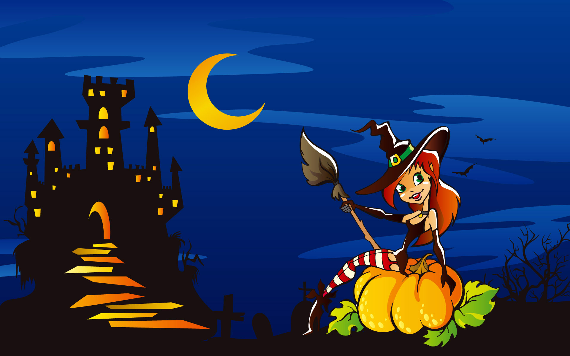 Скачать обои для рабочего стола Симпотичная ведьмочка у замка и фото