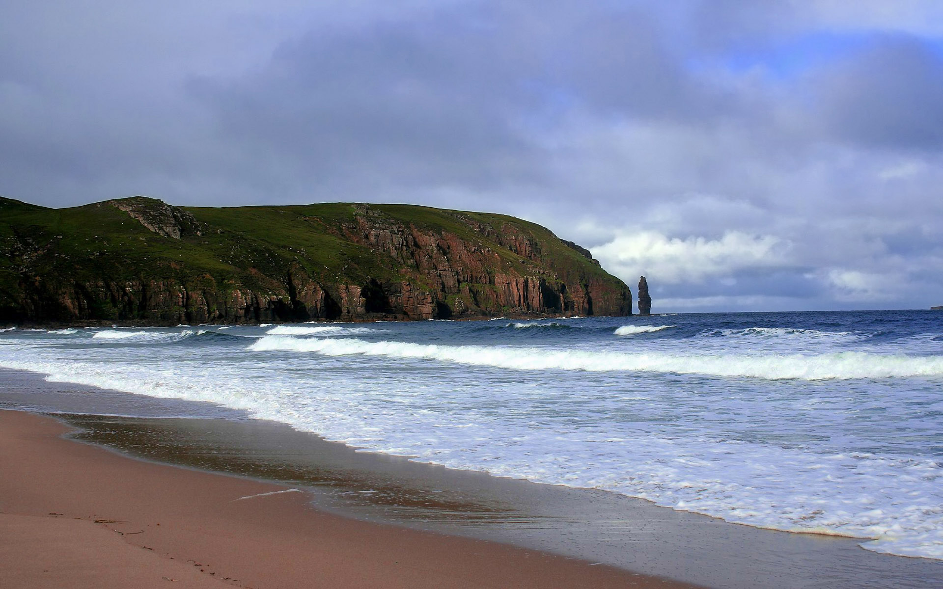 Скачать обои для рабочего стола Скалистая возвышенность выступающая в море и фото