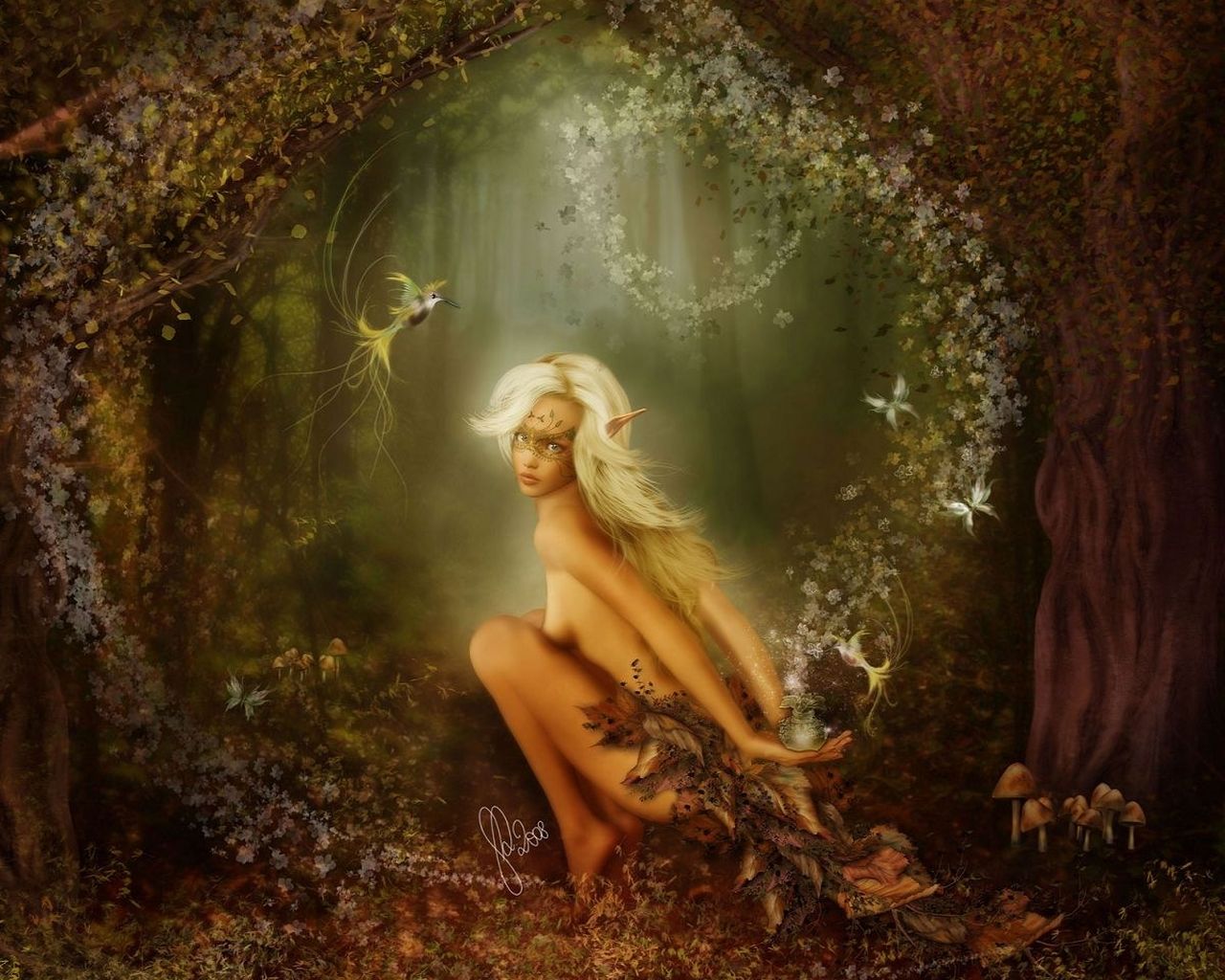 Скачать обои для рабочего стола Сказочная дева в наряде из листьев и фото