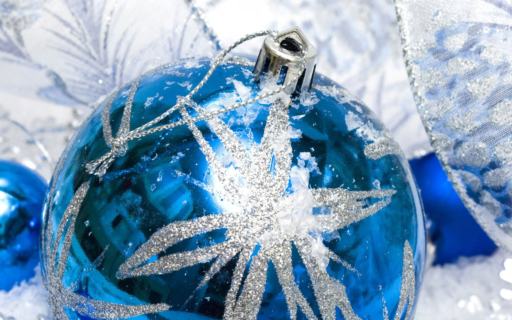 Скачать обои для рабочего стола Сказочная снежинка на голубом шару и фото