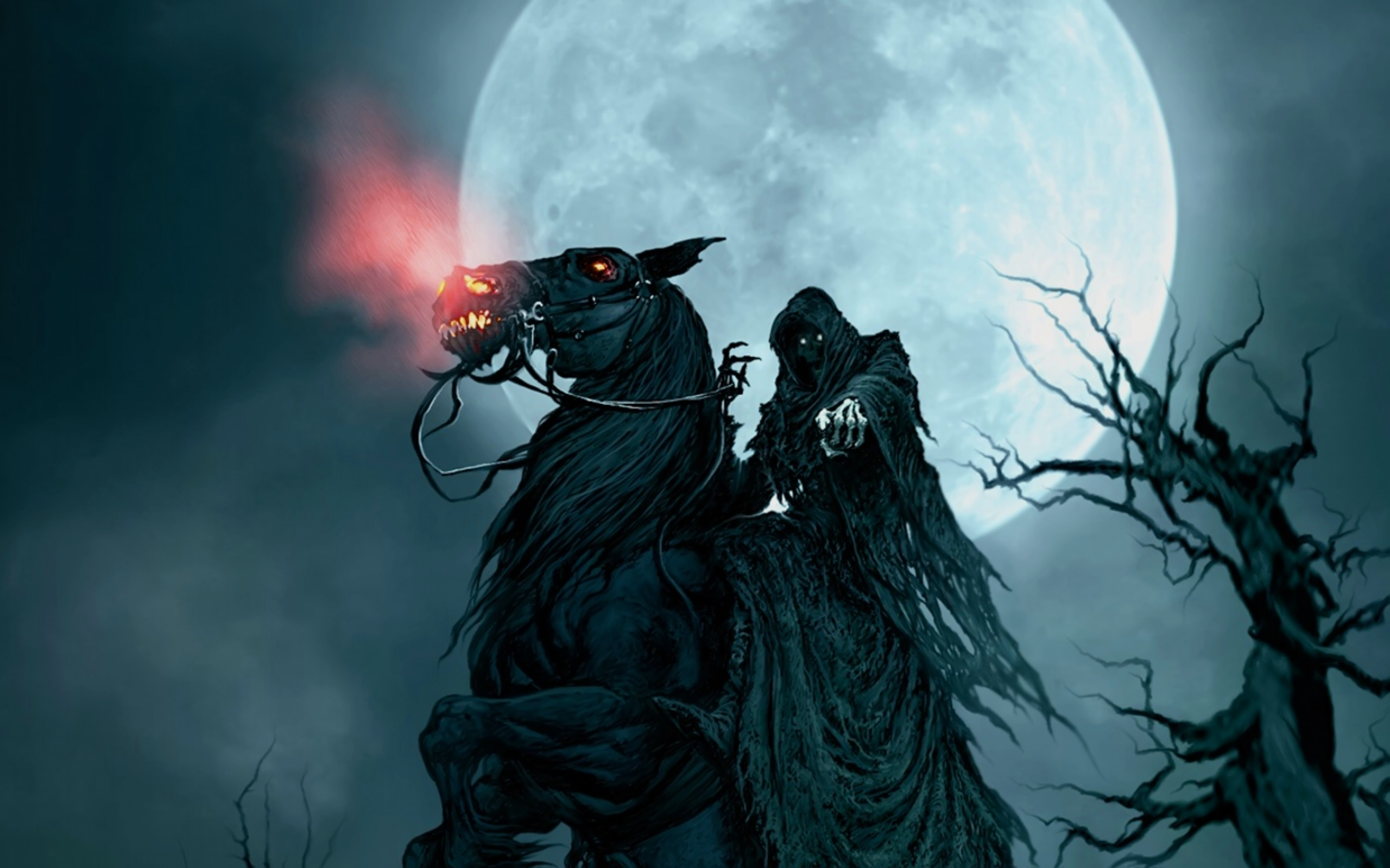 Похожие обои на Скелет на коне: