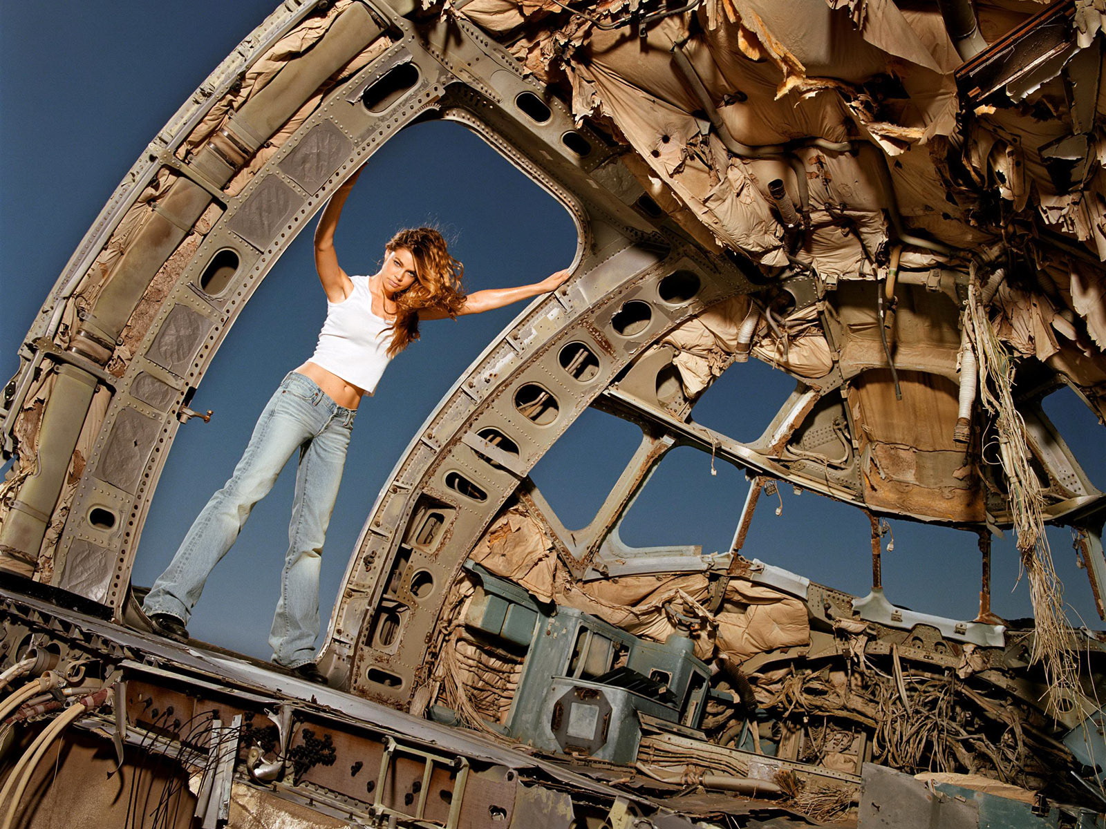 Скачать обои для рабочего стола Скелет самолета и девушка и фото