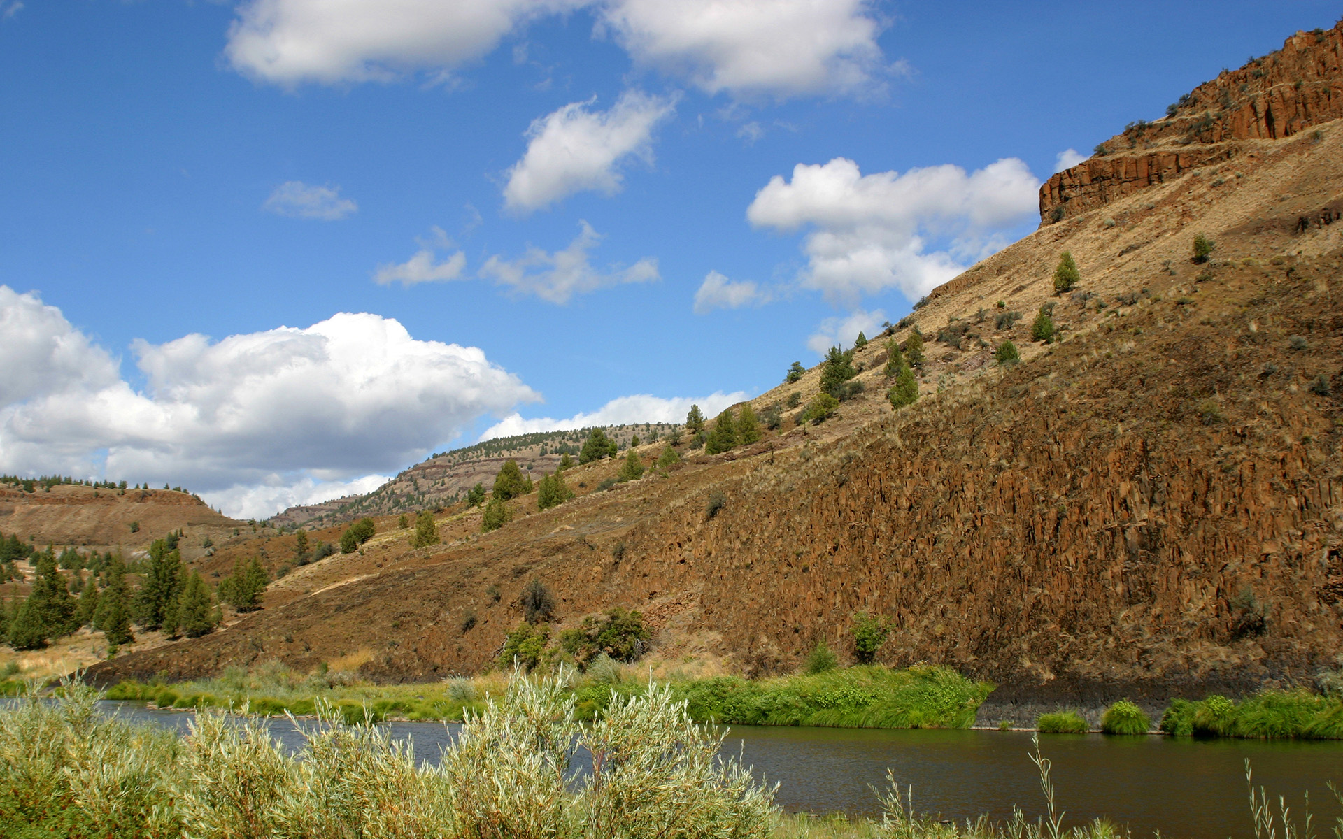 Скачать обои для рабочего стола Склон горы у реки и фото