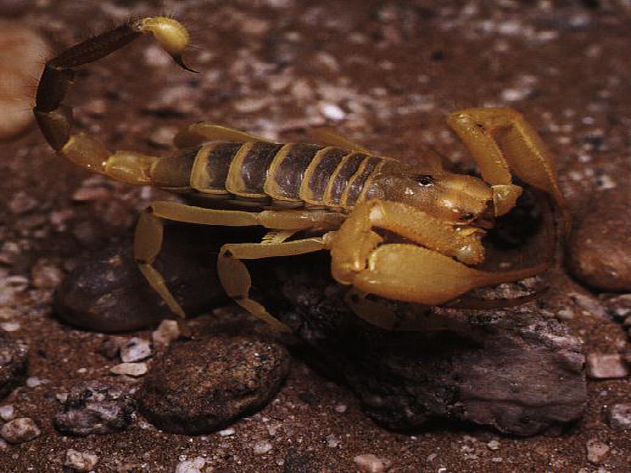 Скачать обои для рабочего стола Скорпион крадется по камням и фото