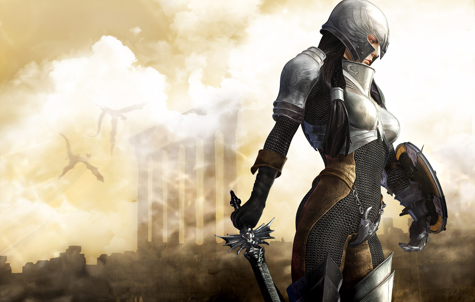 Скачать обои для рабочего стола Скромная воительница у древних парфенонов и фото