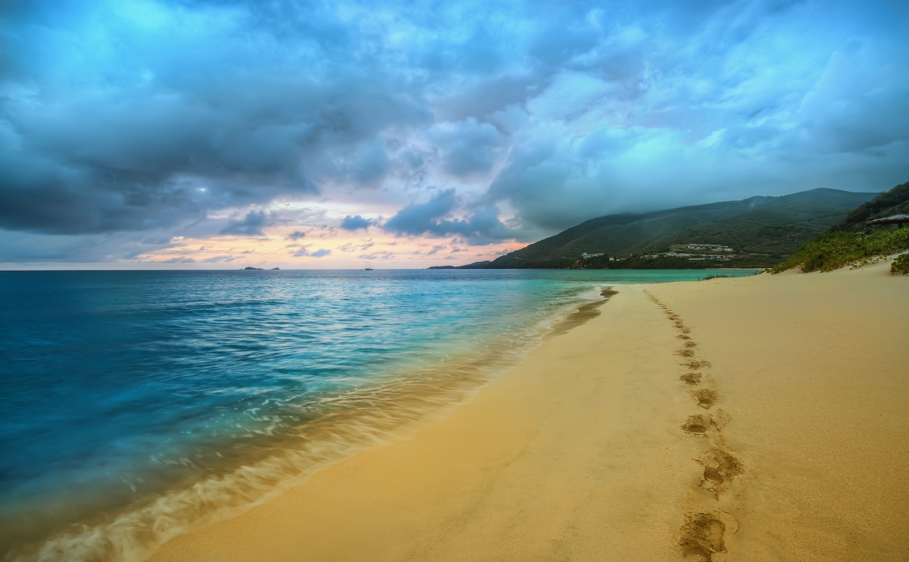 Скачать обои для рабочего стола Следы идущего по песке и фото