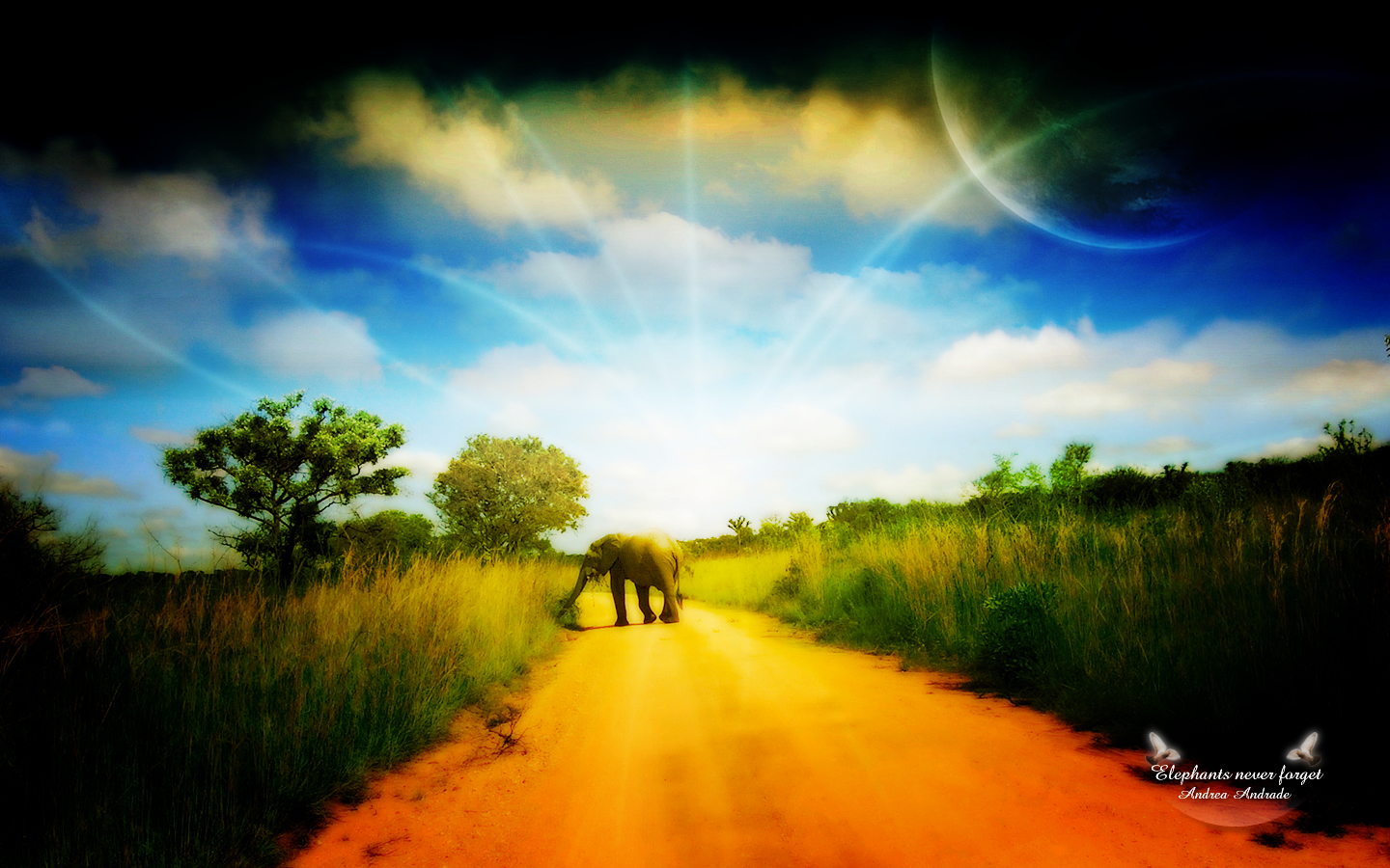 Скачать обои для рабочего стола Слон на дороге и фото