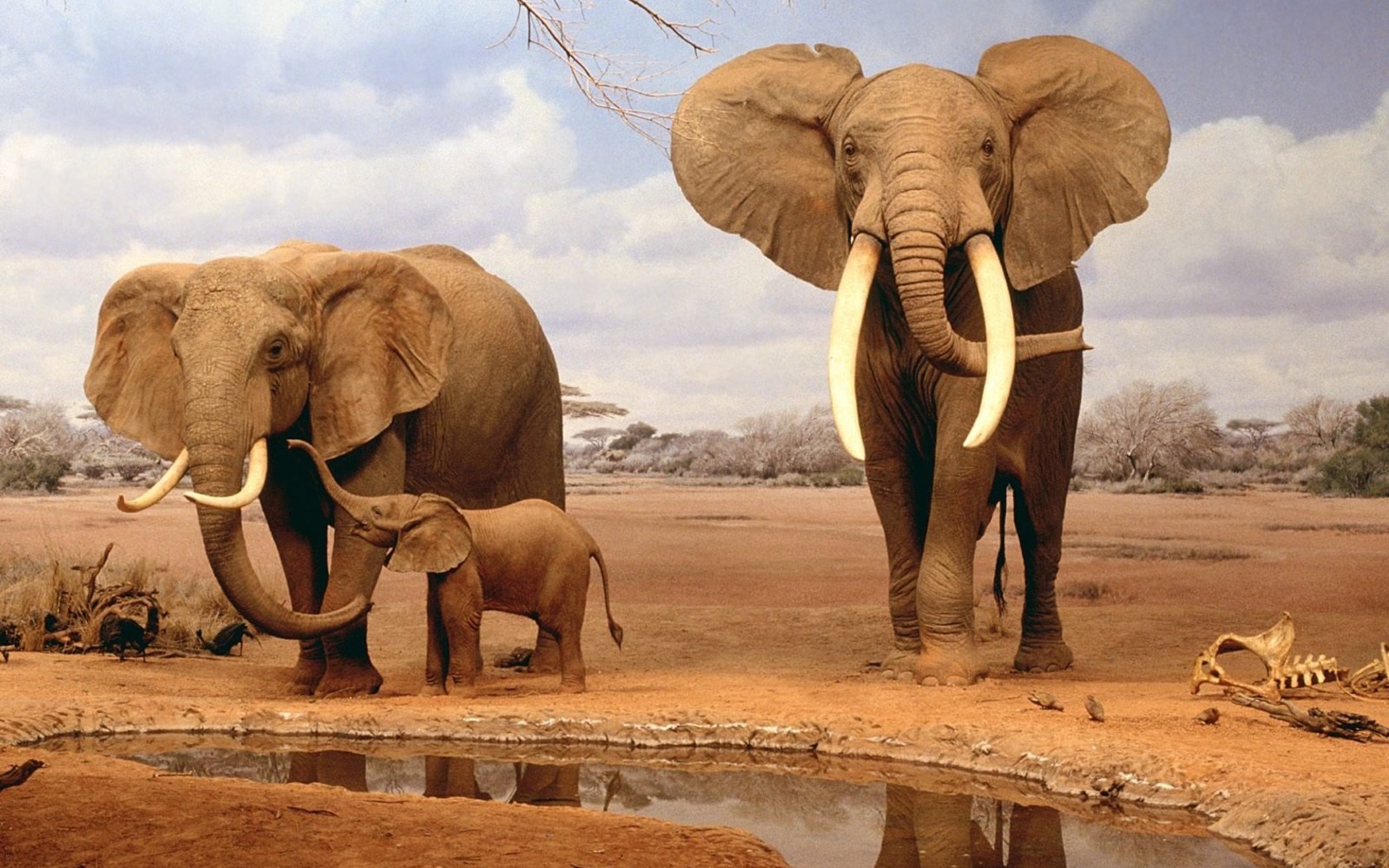 Скачать обои для рабочего стола Слоны у ручья и фото