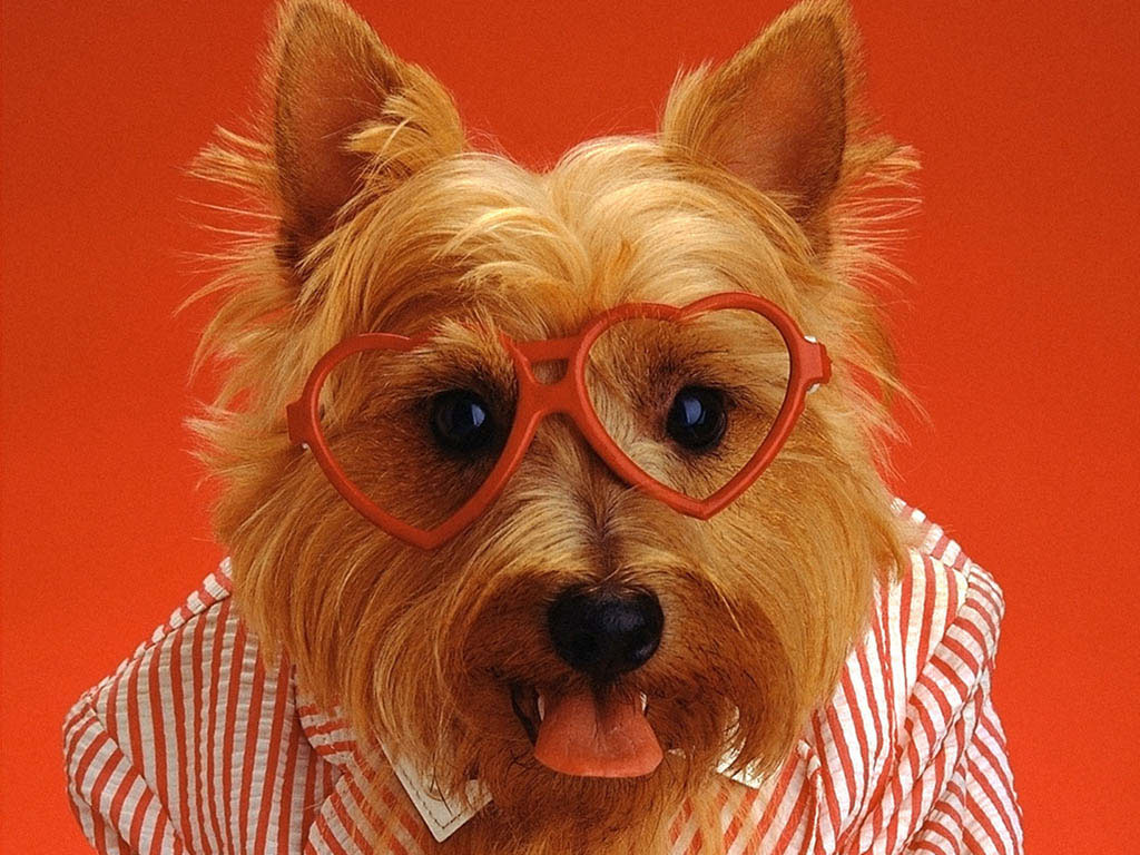 Скачать обои для рабочего стола Смешная собака в очках и фото