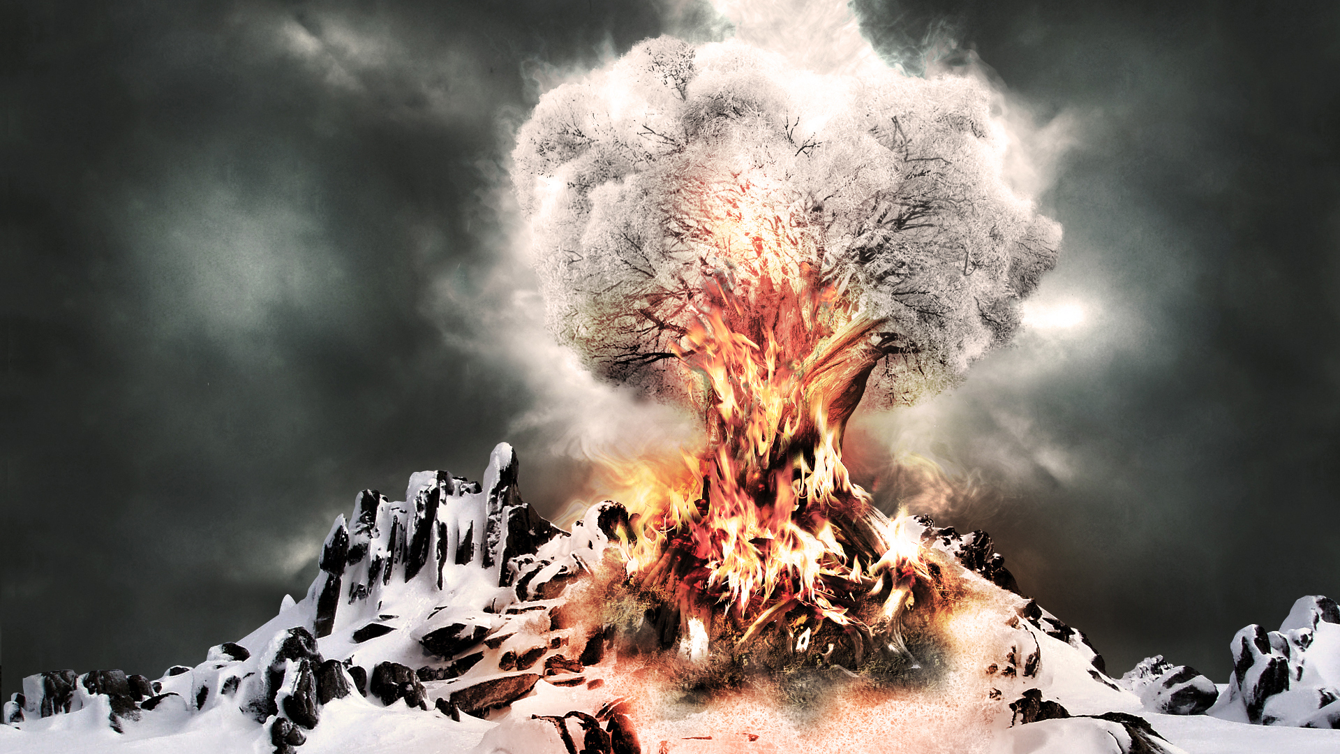 Обои Снег, дерево, огонь