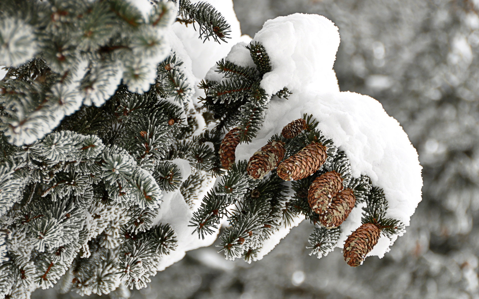 Скачать обои для рабочего стола Снег на ёлке и фото