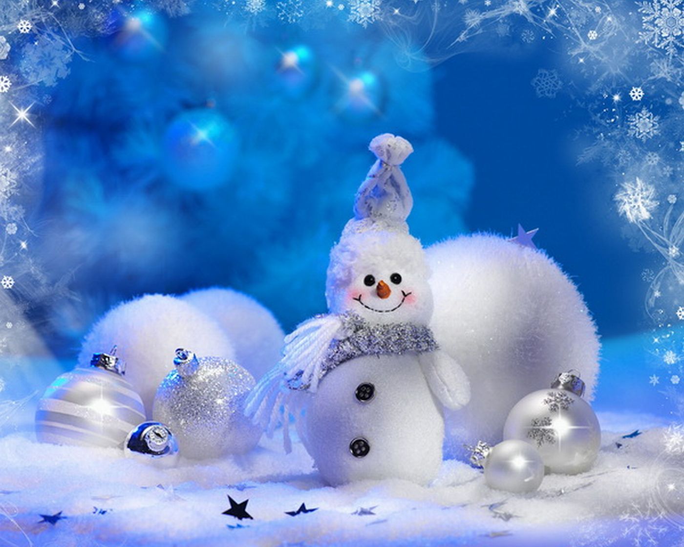 Скачать обои для рабочего стола Снеговик и Новогодние шары и фото