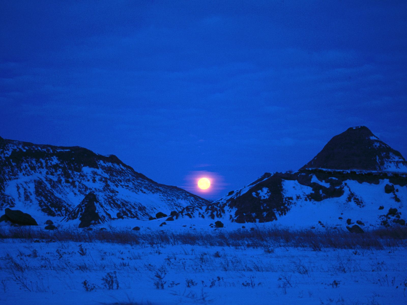 Скачать обои для рабочего стола Снежная долина в сумерках и фото