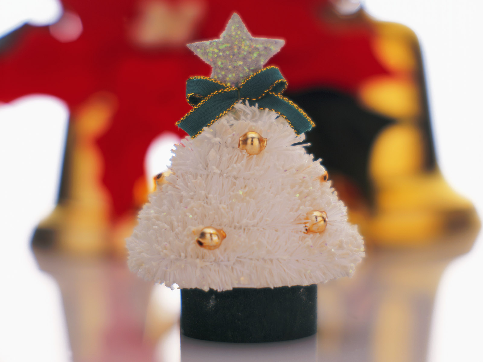 Скачать обои для рабочего стола Снежная елочка с игрушками и фото