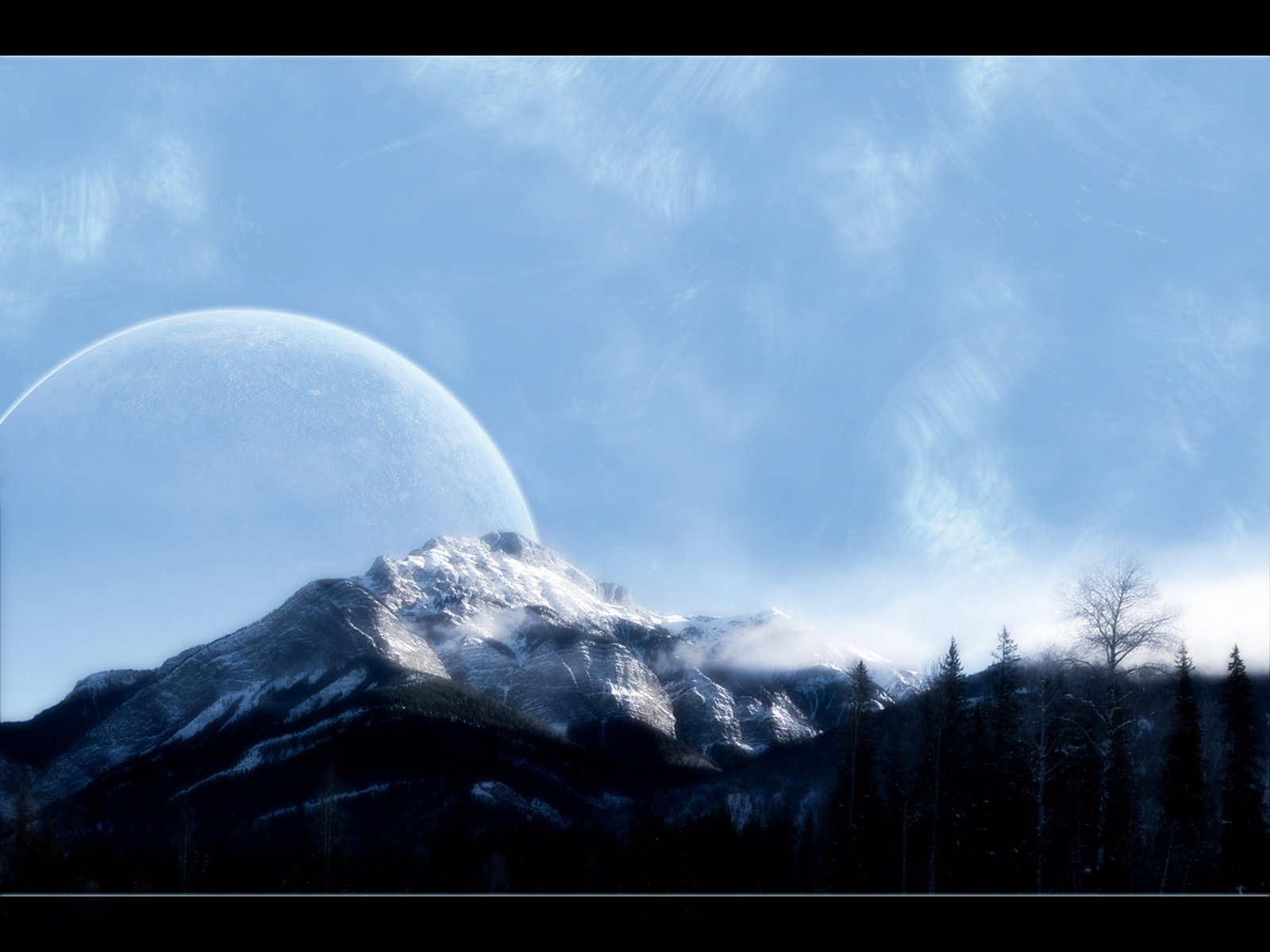 Скачать обои для рабочего стола Снежная вершина и луна и фото