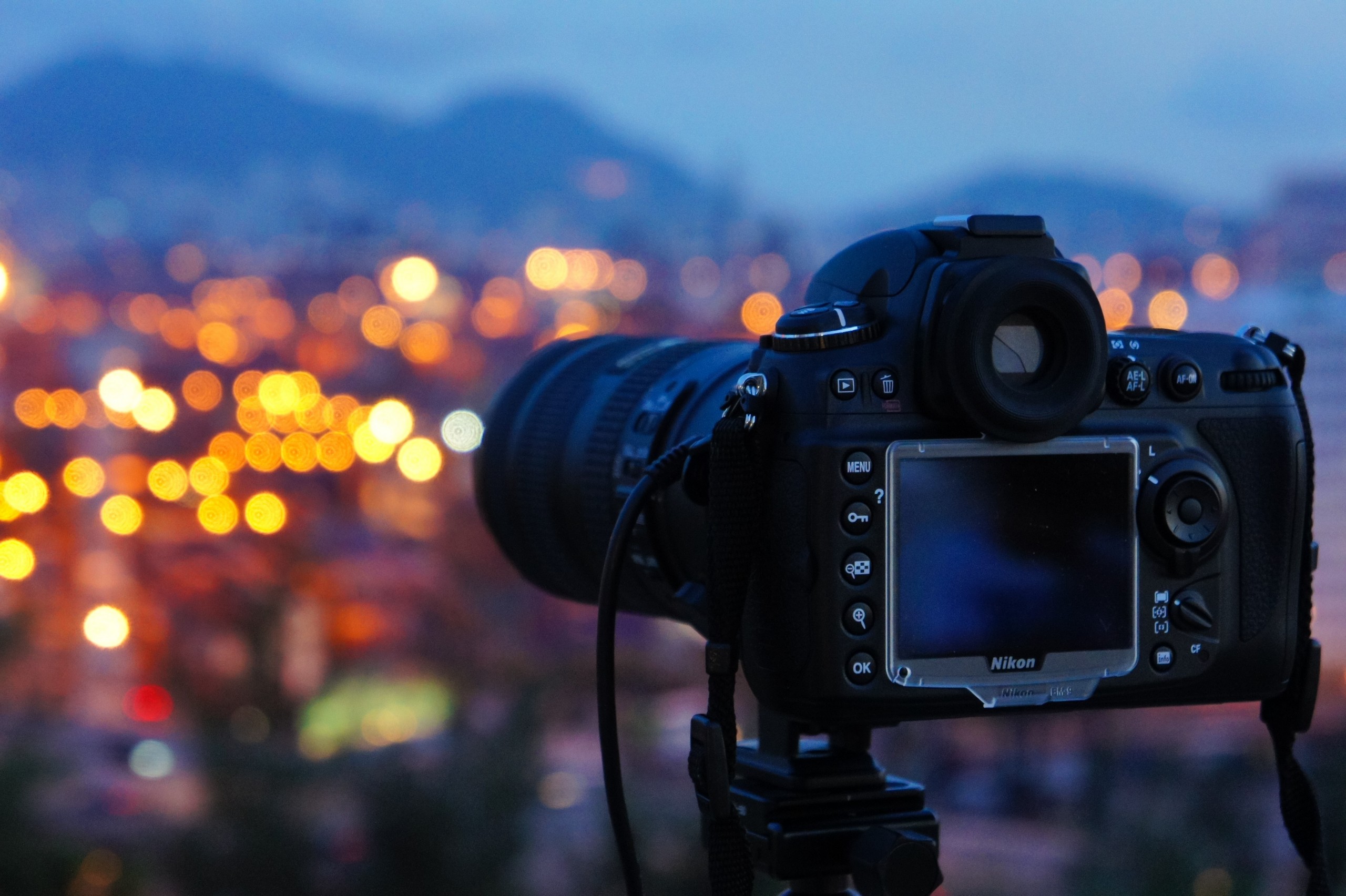 Скачать обои для рабочего стола Снимая огни городка вечернего и фото