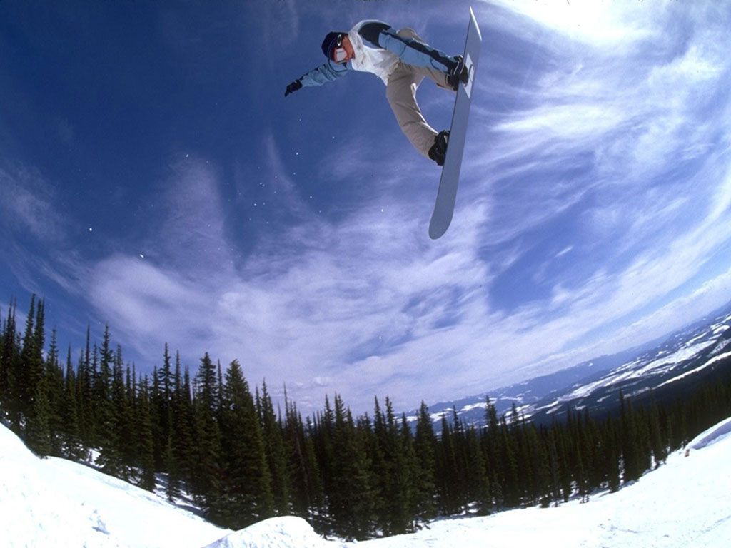 Скачать обои для рабочего стола Сноубордист в полете и фото
