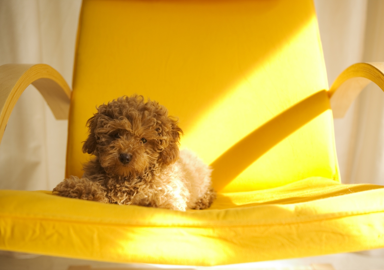 Обои Собачка на желтом стуле