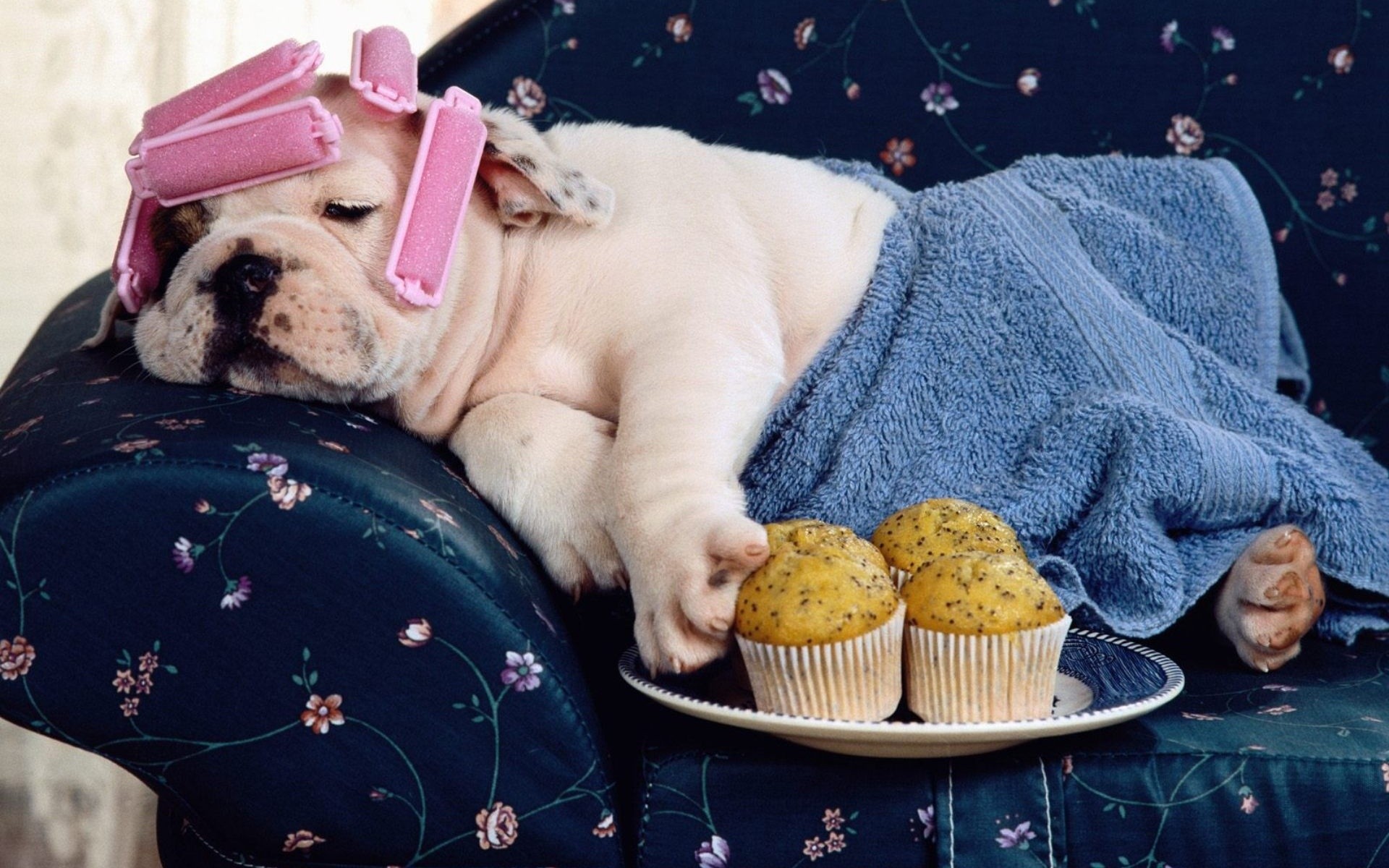 Скачать обои для рабочего стола Собака с бигудями и фото