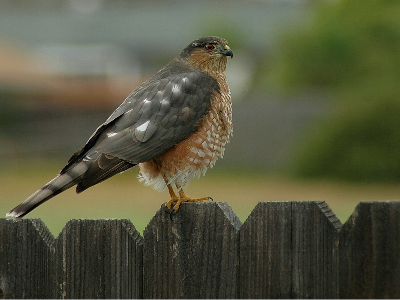 Скачать обои для рабочего стола Сокол на деревенском заборе и фото
