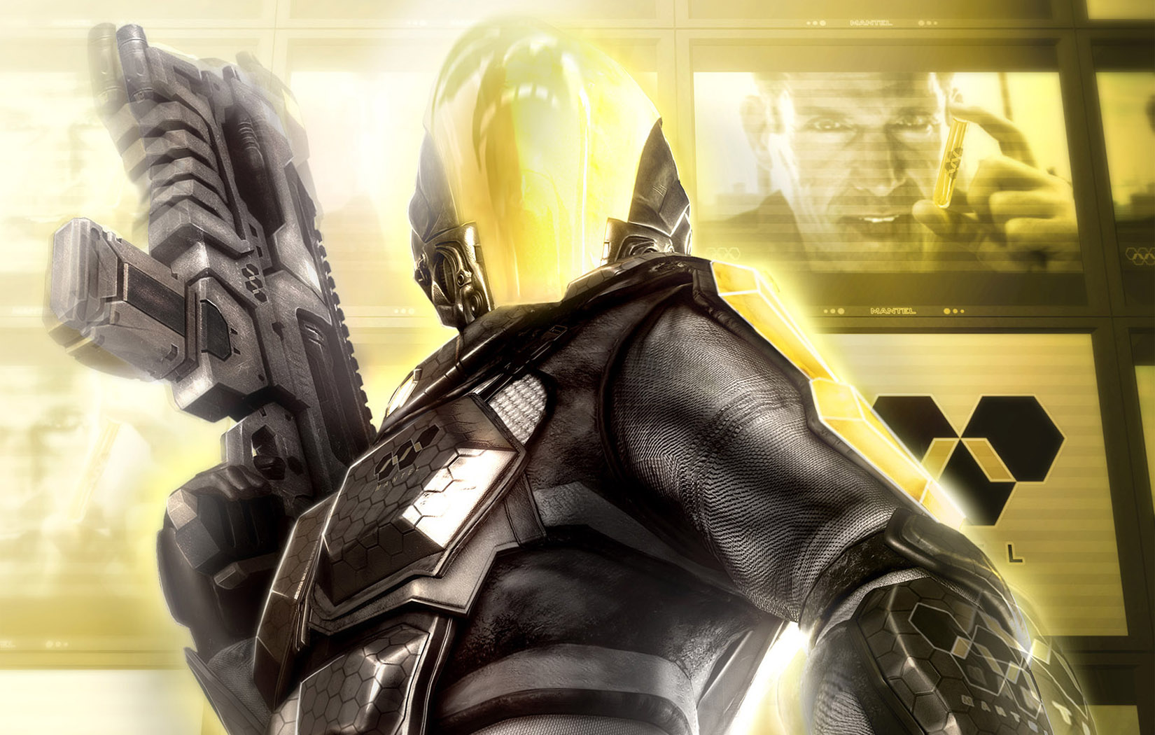 Скачать обои для рабочего стола Солдат в суперзащитной экипировке и фото