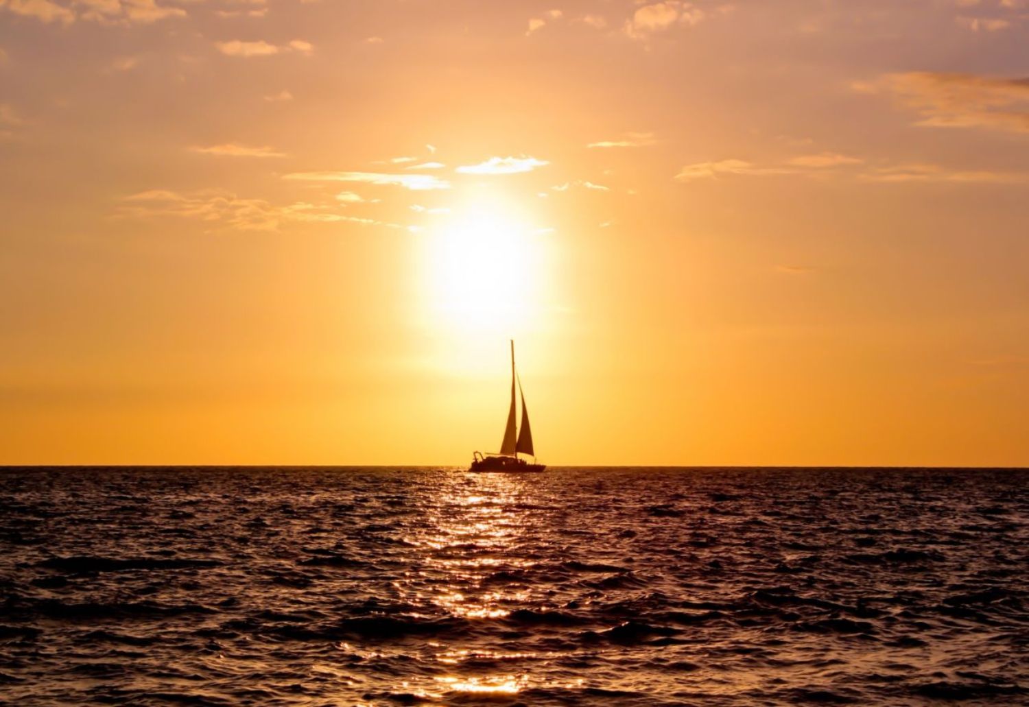 Обои Солнце, море и парусник