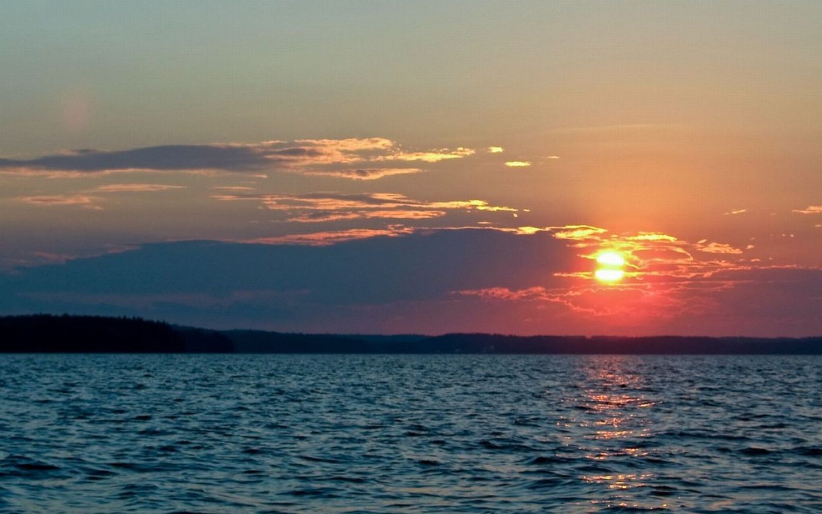 Скачать обои для рабочего стола Солнечная дорожка заката и фото