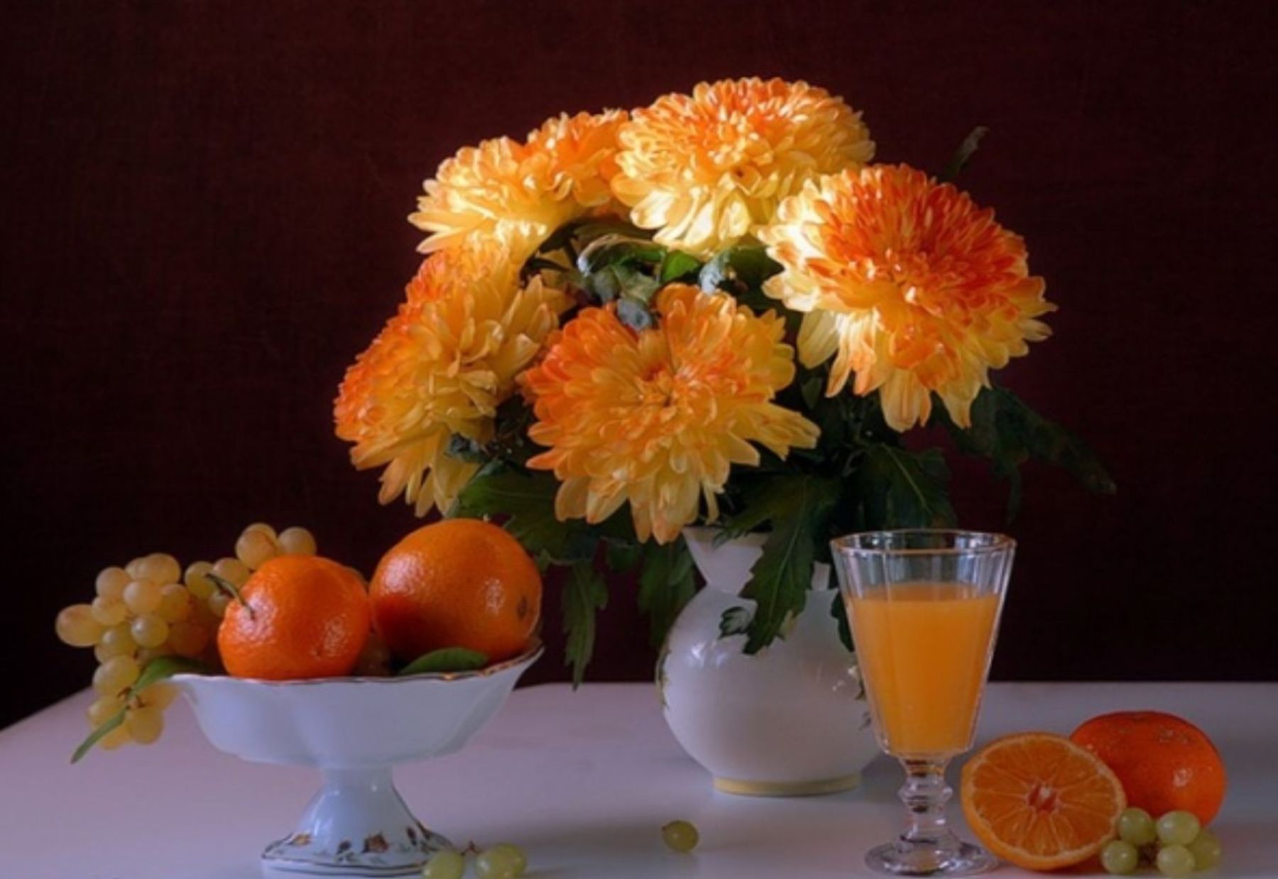 Скачать обои для рабочего стола Солнечные цветы и фрукты и фото