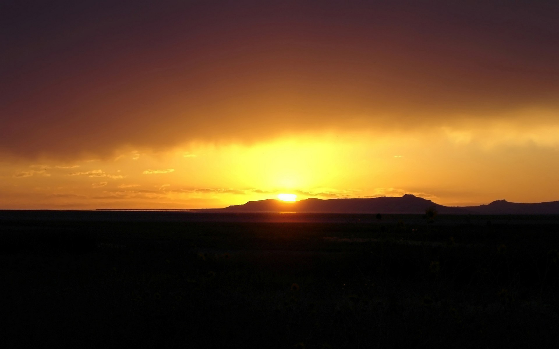 Скачать обои для рабочего стола Солнечный закат над горой и фото