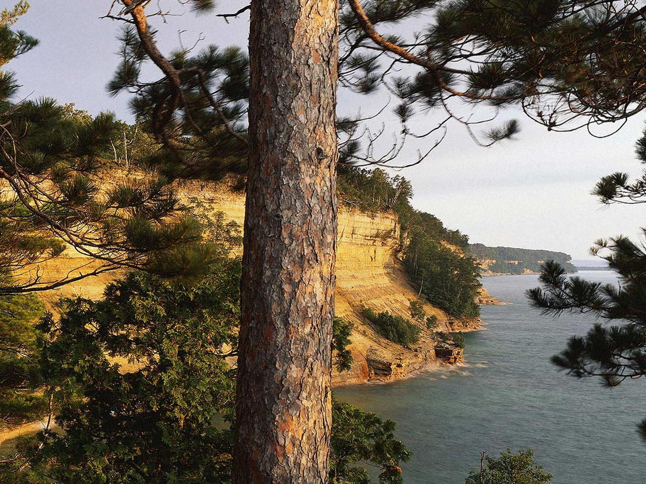 Скачать обои для рабочего стола Сосны на песчаном побережье и фото