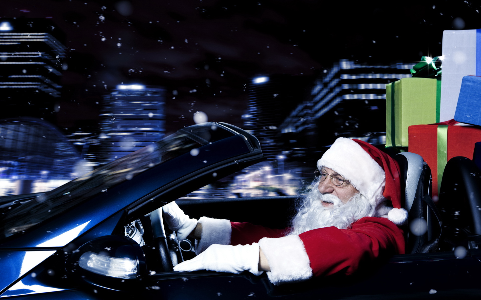 Похожие обои на Современный Дед Мороз на кабриолете: