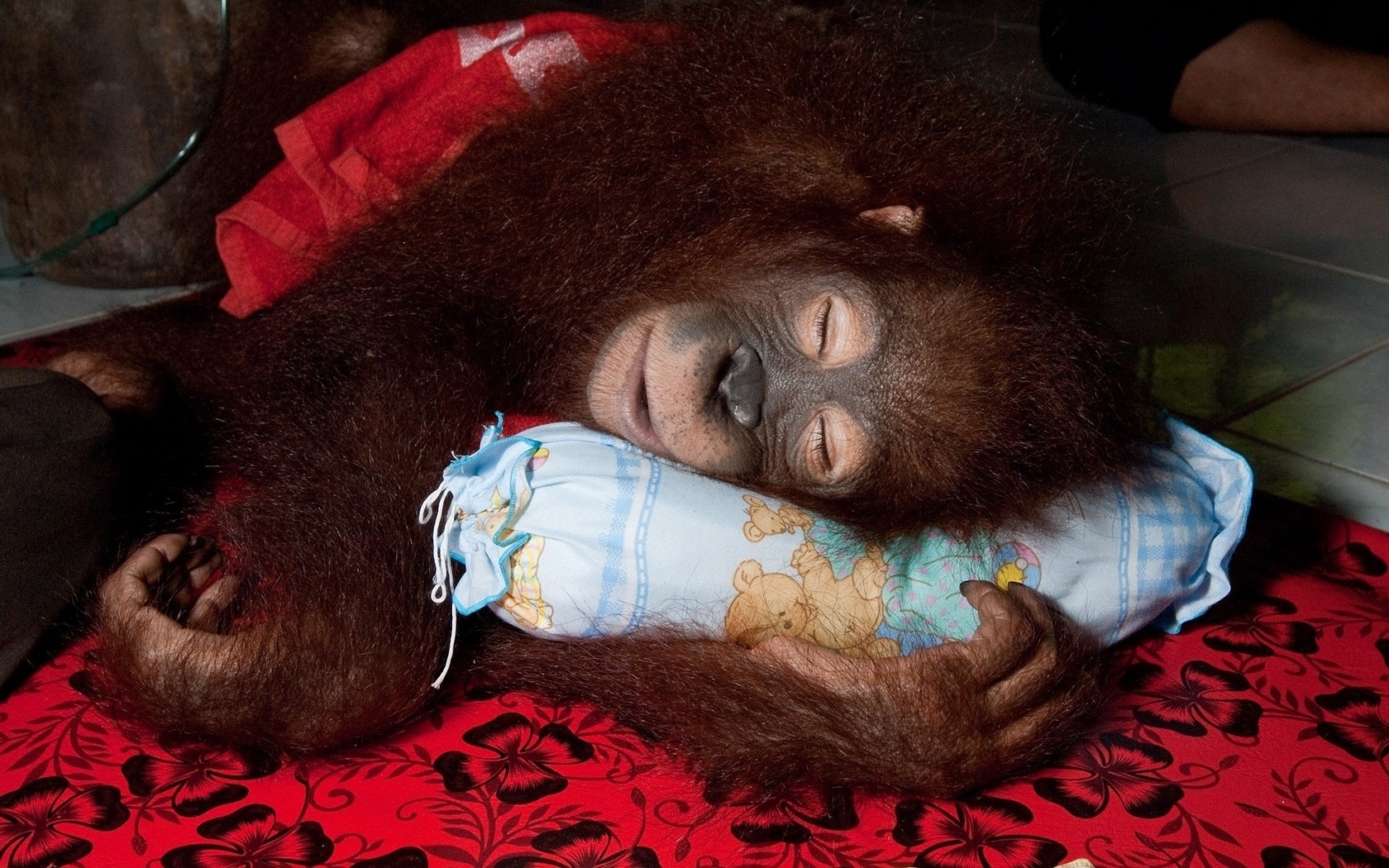 Скачать обои для рабочего стола Спящая обезьянка и фото
