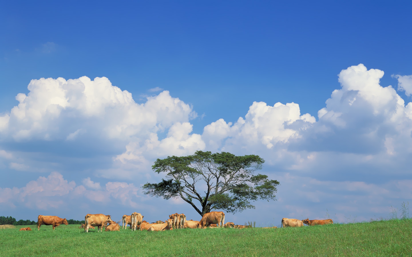 Скачать обои для рабочего стола Стадо пасущихся коров и фото