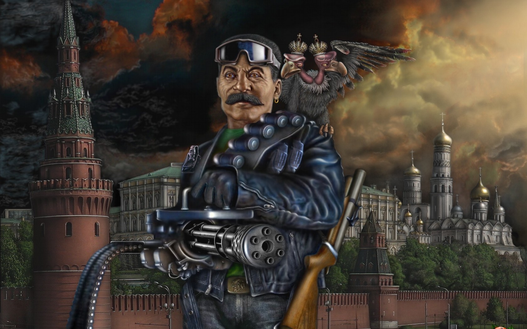 Скачать обои для рабочего стола Сталин у кремля с пулеметом и фото