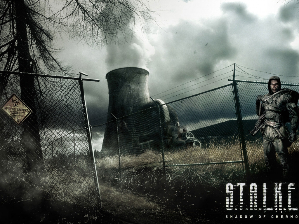 Скачать обои для рабочего стола Сталкер на фоне АЭС и фото
