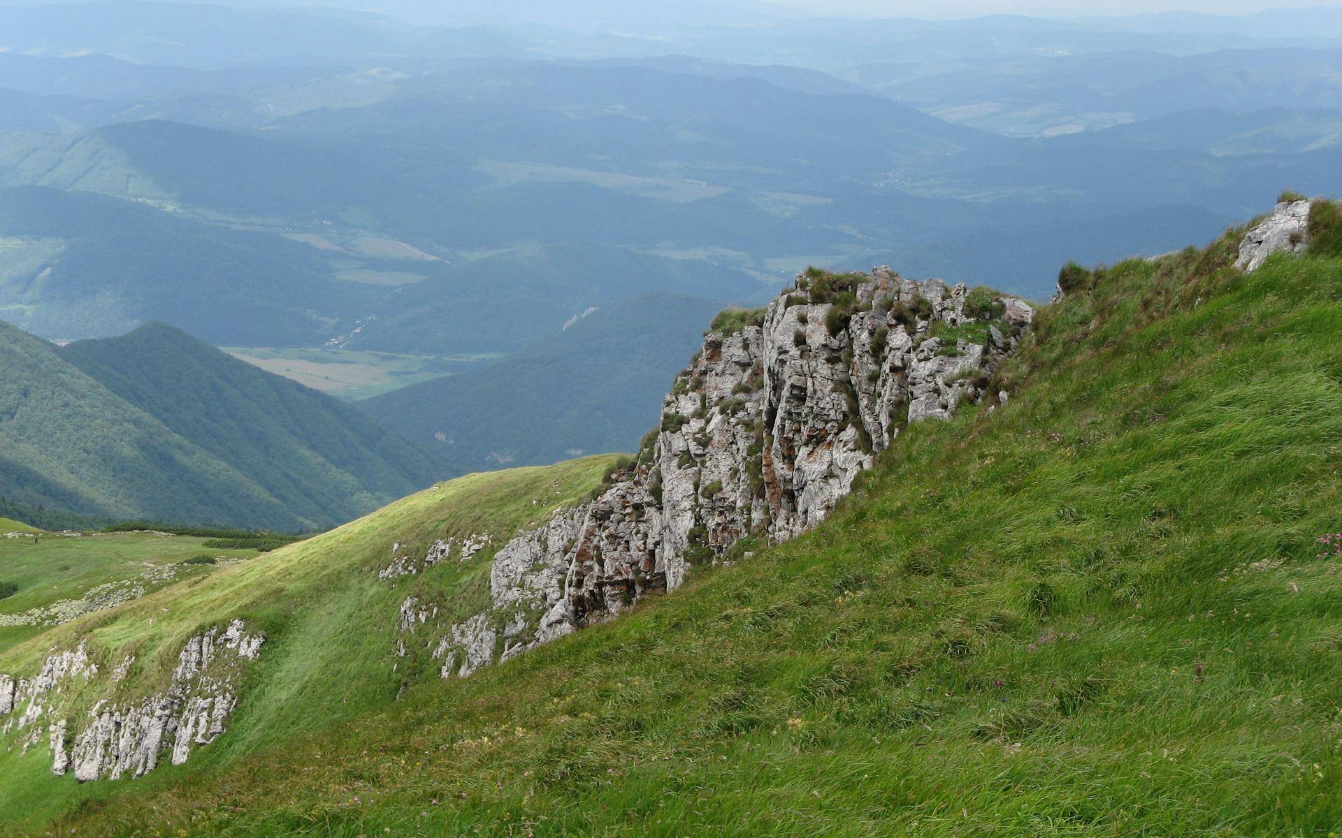 Скачать обои для рабочего стола Старый, серый гранит из зеленой травы и фото