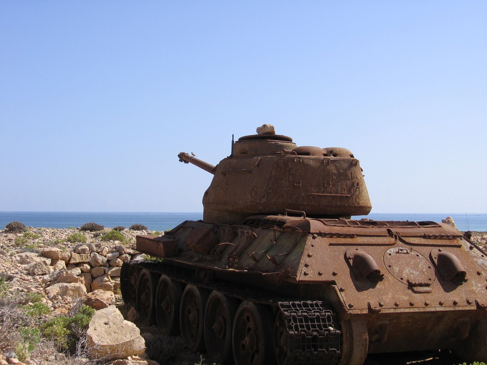 Скачать обои для рабочего стола Старый танк на берегу моря и фото