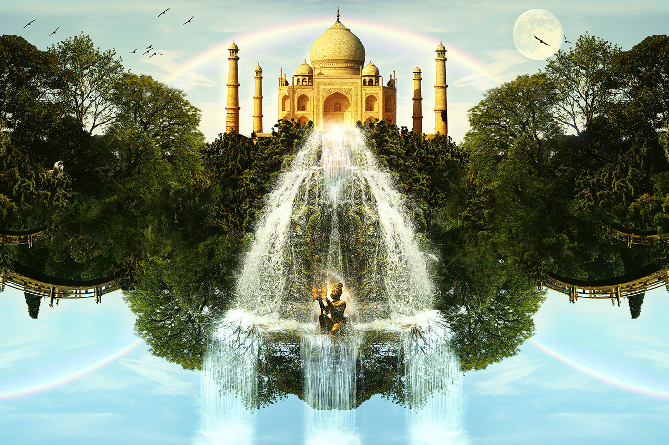 Скачать обои для рабочего стола Статуя Будды под водопадом Тадж-Махала и фото