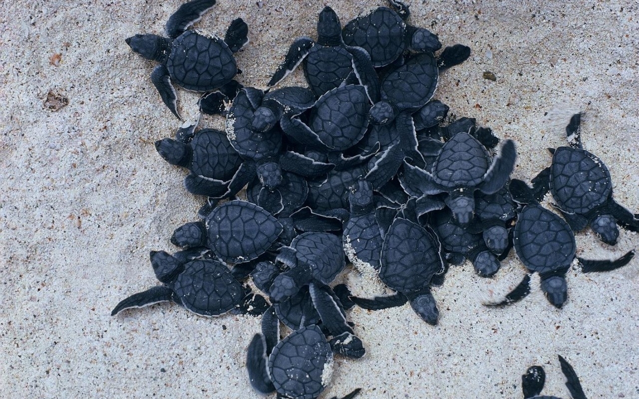 Скачать обои для рабочего стола Стая черепашек в песке и фото